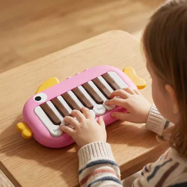 Nejlepší dárek pro naše dvojčata—hrají si společně a střídají se v legračních i cvičných melodiích. Líbí se mi, jak je pevný, takže vydrží i divočejší hraní.