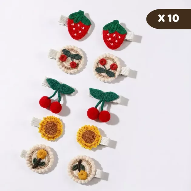 Sada 10 ks roztomilých letních vyšívaných sponek do vlasů pro děti