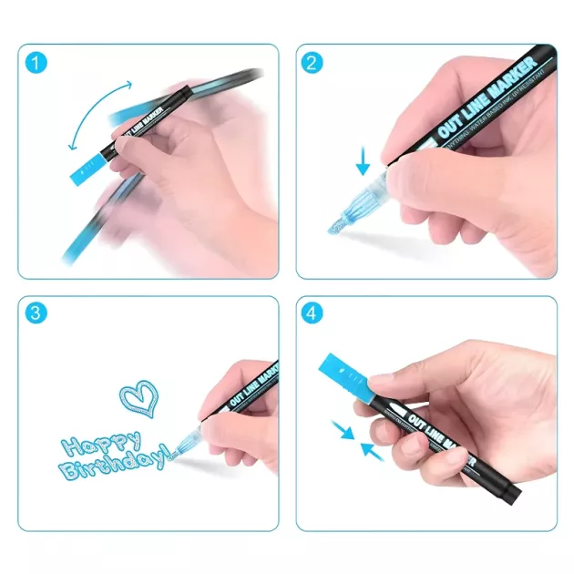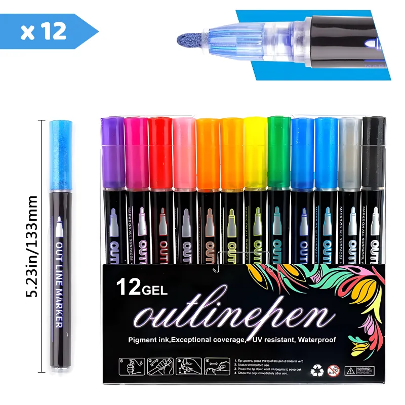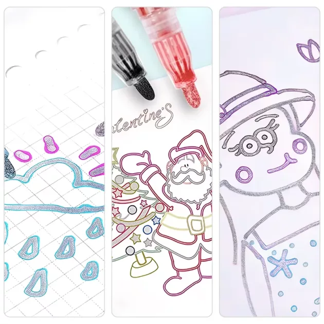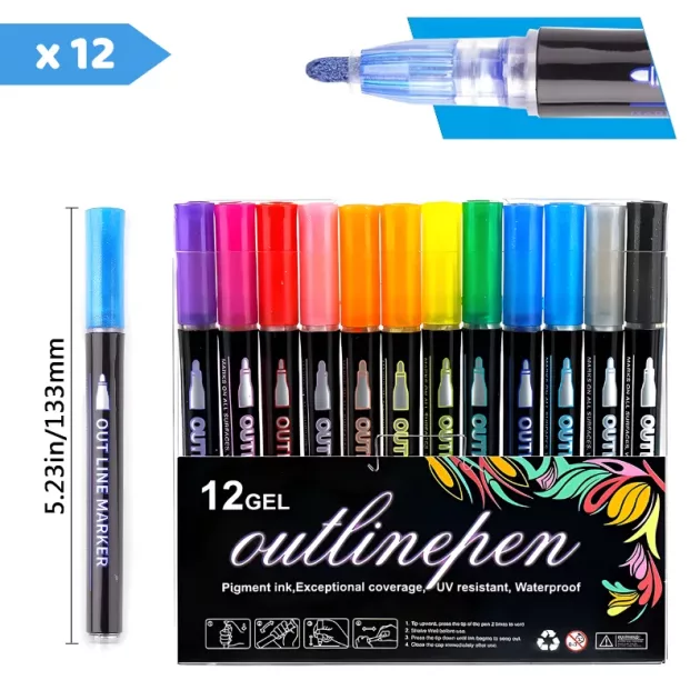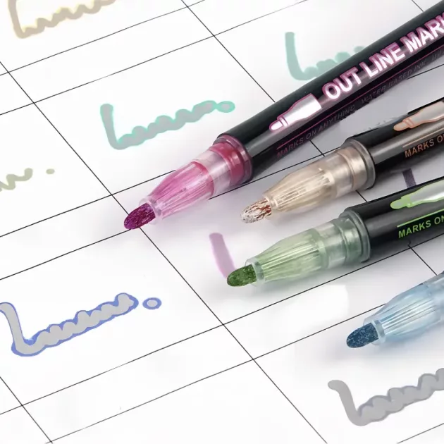 Snadné dvojité obrysování - Děti dosáhnou výrazných efektů každým plynulým tahem. Jedinečný design okamžitě přidává metalický lesk každému tvůrčímu dílu.