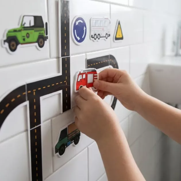 Proměňte každé mytí v hravou zábavu s vzrušujícími samolepkami na koupelnové dlaždice. Kreativní vozidla, silnice a značky snadno přilnou na dlaždice a podněcují nekonečné příběhy. Děti si rády staví vlastní městskou scénu, zatímco vy si odpočinete s vědomím, že koupel je bez nepořádku.