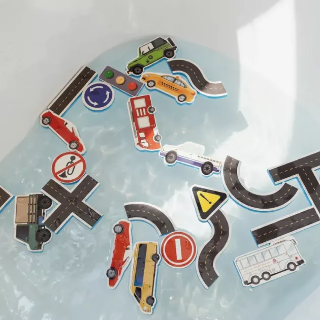 Sadu silnic používáme každý den! Moje dvojčata ráda skládají značky a auta, a koupání před spaním probíhá bez stresu.