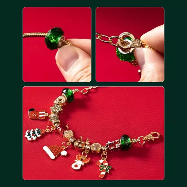 Složila jsem si svůj vlastní vánoční náramek! Barvy byly veselé a jasné. Je úžasné, jak každý přívěsek může vyprávět svůj příběh.