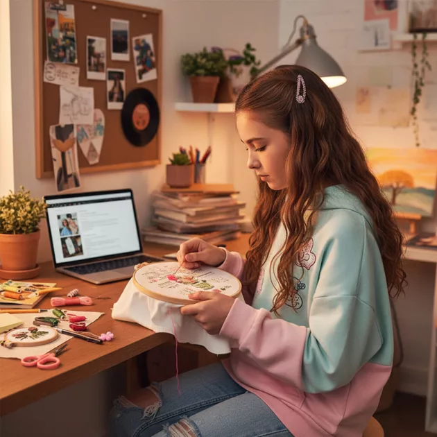Aktivita bez obrazovky - Ruce jsou zaměstnané a mysl se soustředí na kreativní projekty. Produktivní čas nahrazuje digitální rozptýlení něčím smysluplným.