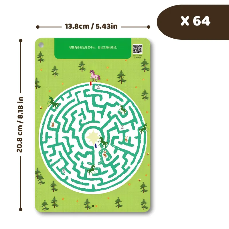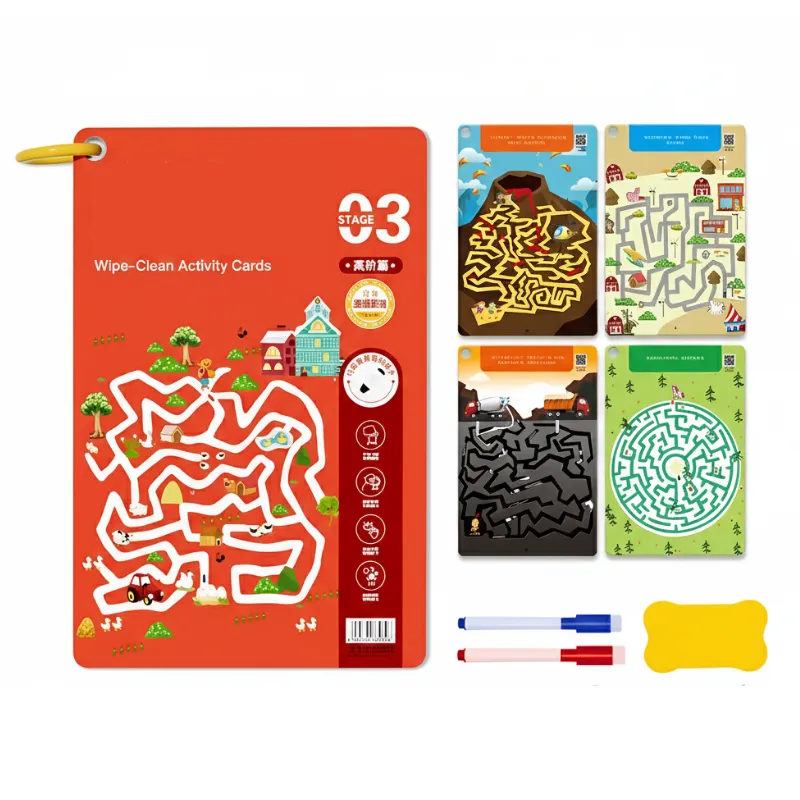 Jasné aktivity karty přinášejí zábavné výzvy, které dělají každý okamžik vzrušujícím. Děti si užívají prozkoumávání barevných cest a zároveň se učí rychle myslet. Každá stránka podporuje kreativní myšlení a udržuje dětskou pozornost déle. Zaneprázdněné ruce zůstávají aktivní, čímž snižují čas strávený u obrazovky a zabraňují nudě.