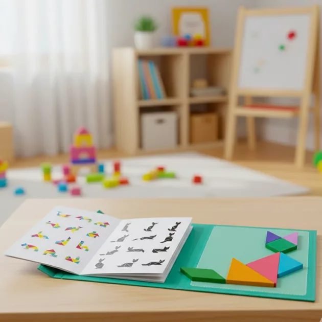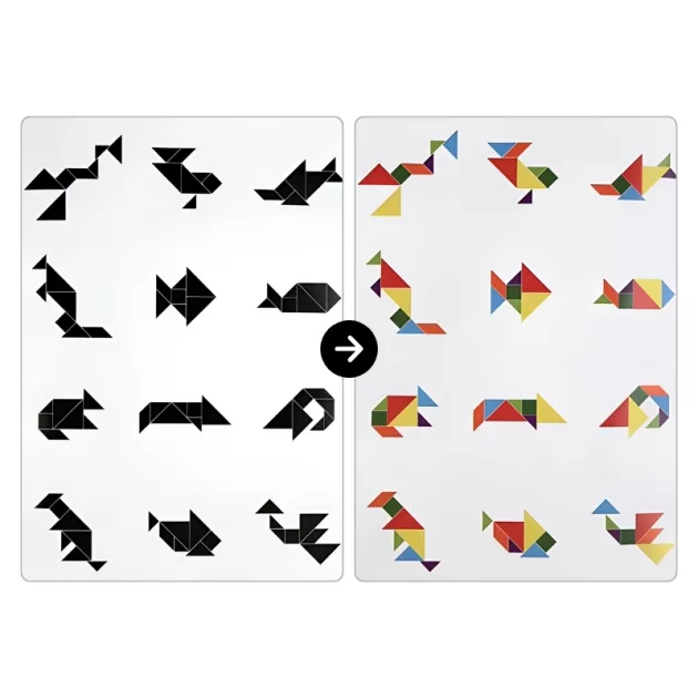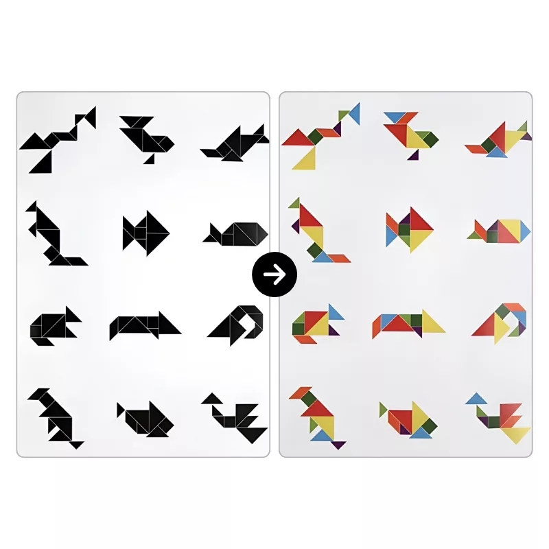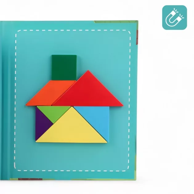 S tímto tangramem jsme hráli každou noc po večeři. Přidává se i máma a skládáme auta, rakety nebo ptáky. Magnety dobře drží, nic nepadá.