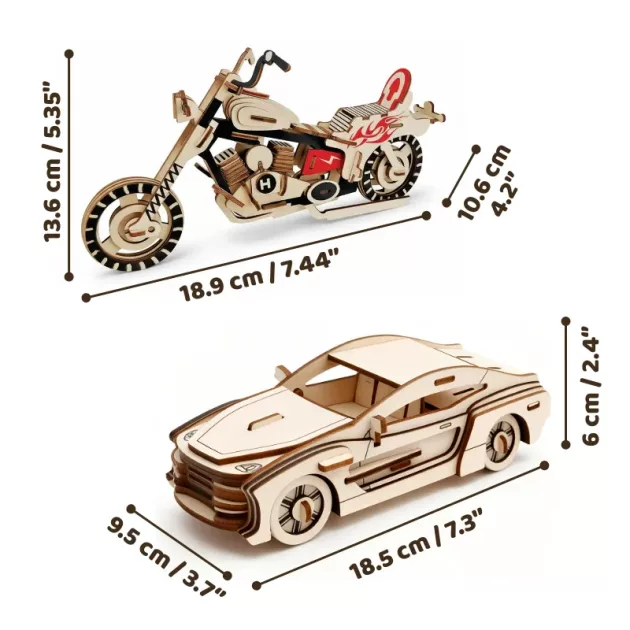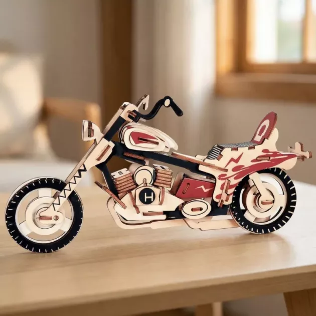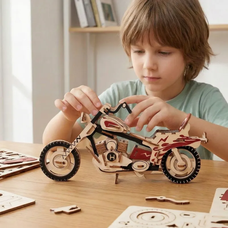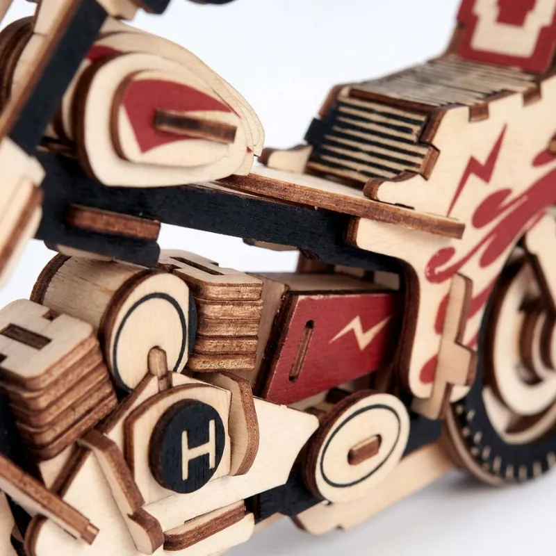 3D dřevěné puzzle motorka – DIY model auta a stavební bloky