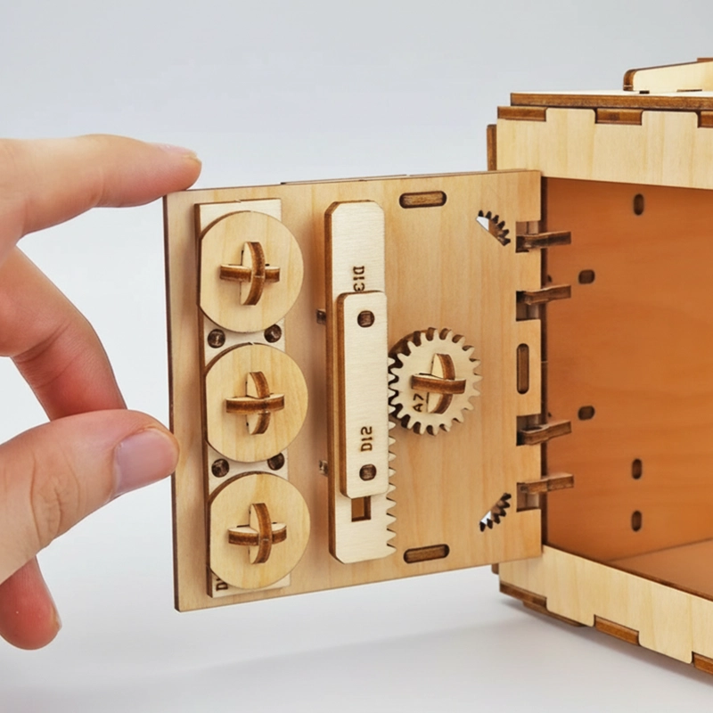 Děti milují praktické výzvy, které zaměstnávají jejich mysl. Tato dřevěná sada nabízí vzrušující aktivitu, která přináší hodiny radostného soustředění. Stavění skříňky podporuje představivost a dává skutečný pocit úspěchu. Hotové projekty poskytují stylové místo pro bezpečné uchování cenností.