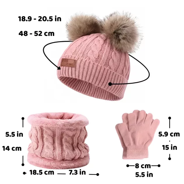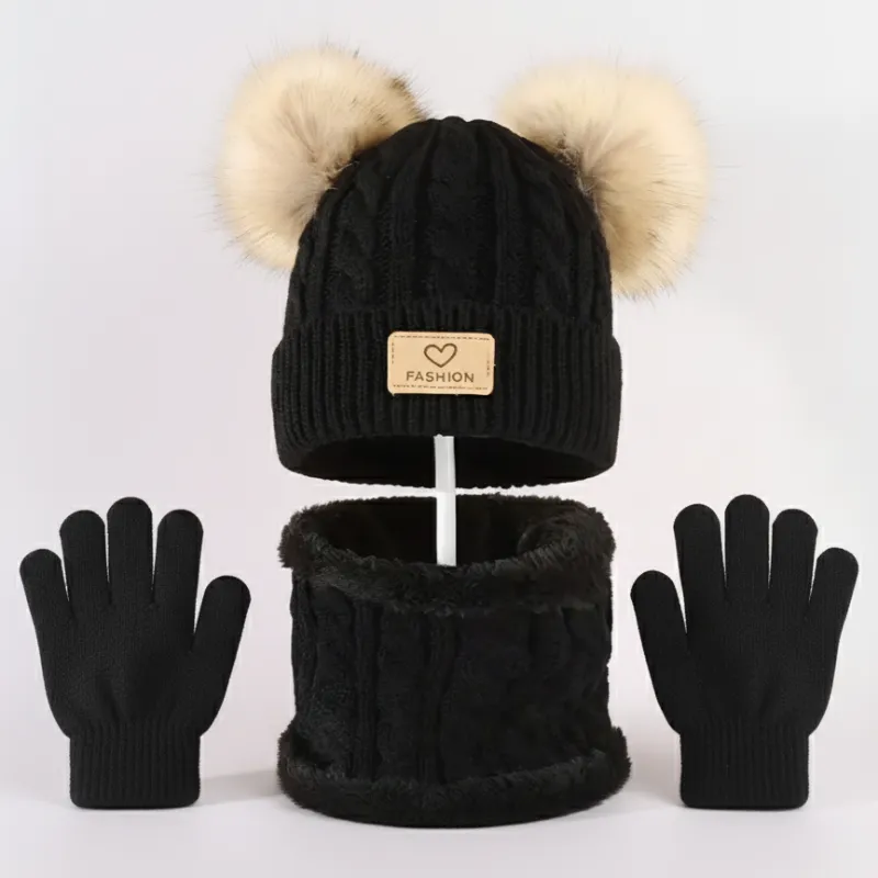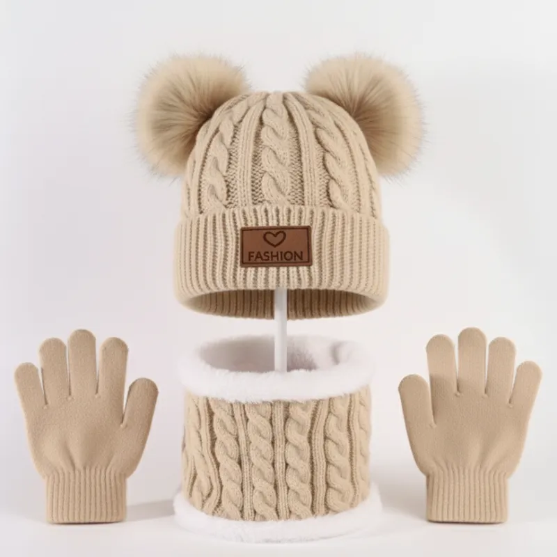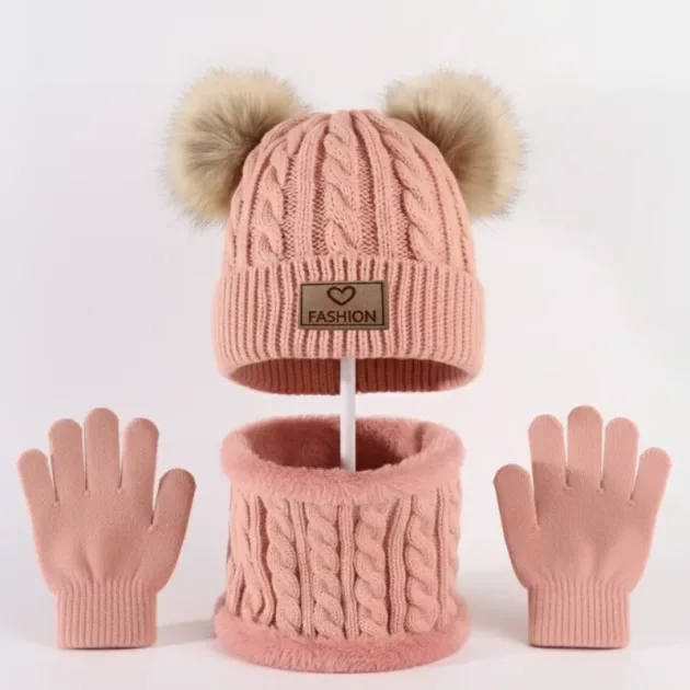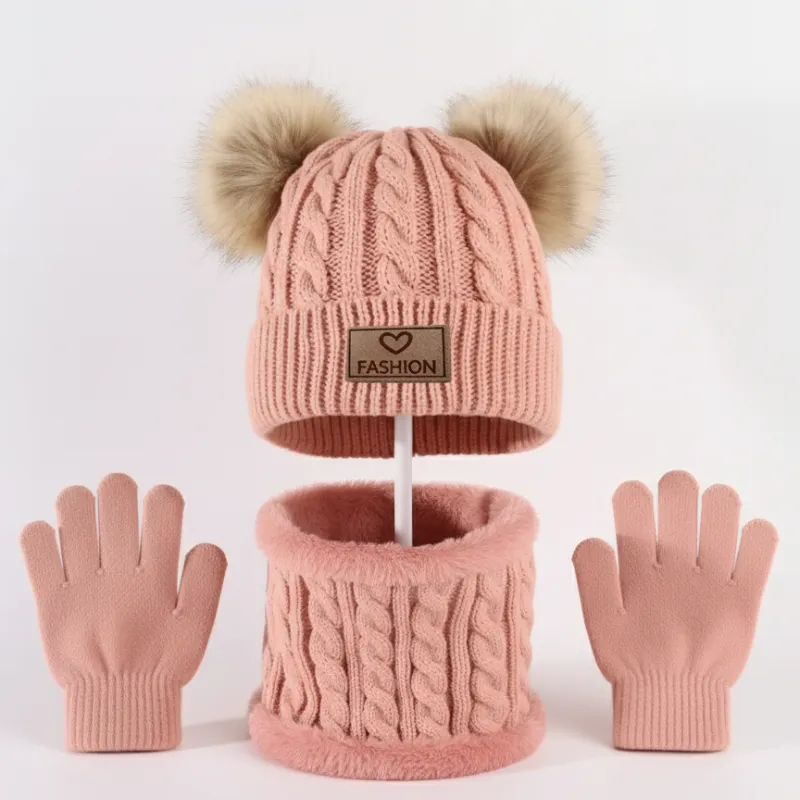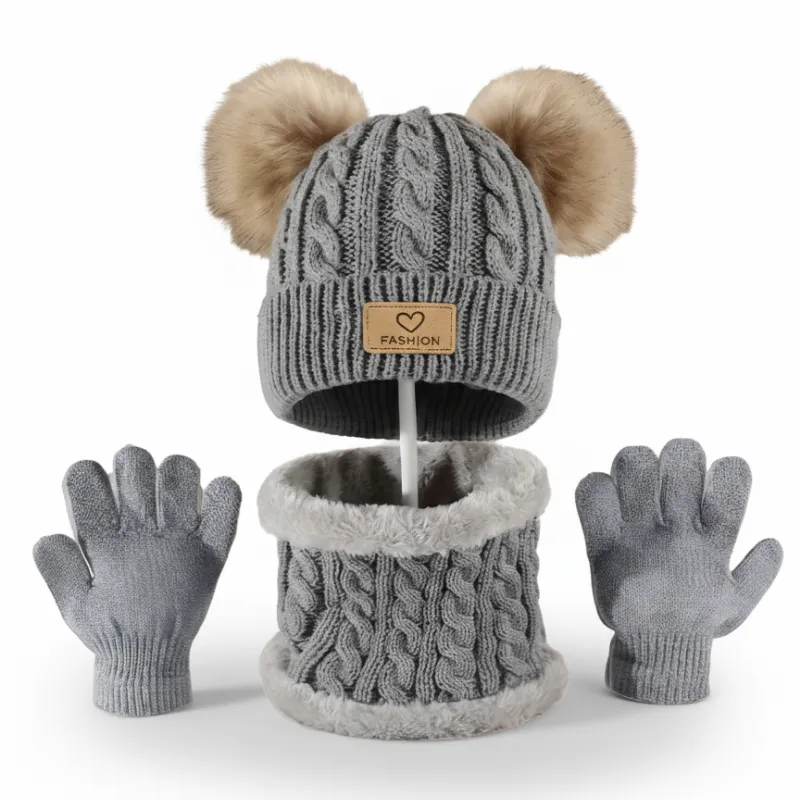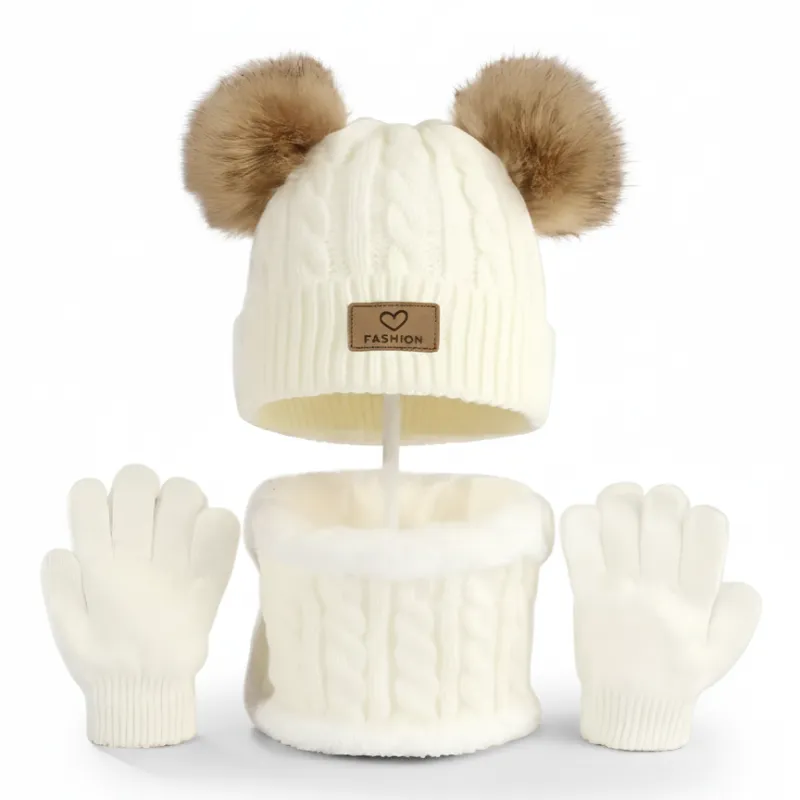 3dílná roztomilá teplá bavlněná čepice, šála a rukavice pro děti