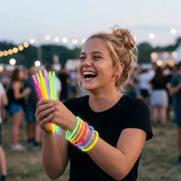 Děti si snadno vyrábějí náramky a tvary v zářivých barvách. Každá tyčinka přináší dlouhotrvající zábavu na večírcích nebo při společných hrách. Rodiče ocení zábavu bez nepořádku, která je bezpečná v interiéru. Udělejte z každé akce nezapomenutelný zážitek s veselými, svítícími doplňky.
