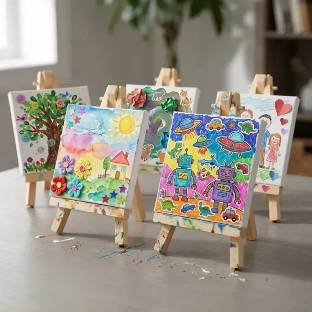 Můj syn používá mini plátna po škole místo toho, aby sahal po tabletu. Maluje superhrdiny, mazlíčky a vymyšlené světy. Líbí se mi, jak snadno se dají vystavit.