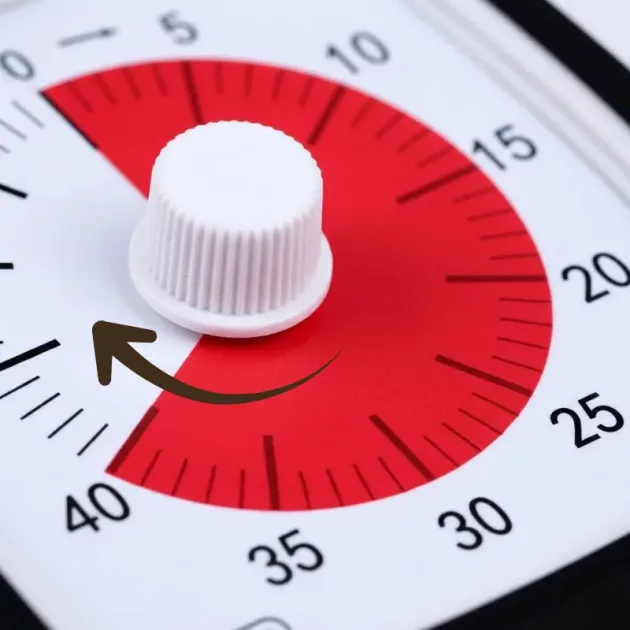 Snadné vizuální sledování - Jasný červený kotouč přesně ukazuje, kolik času zbývá. Děti se rychle učí hospodařit s časem tím, že jasně vidí jeho plynutí.