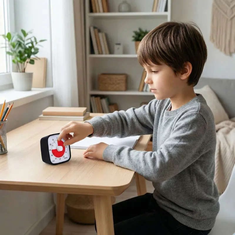 Pomozte svému dítěti zůstat každý den na správné cestě. Tento odpočítávací časovač dává jasné vizuální podněty pro úkoly a přestávky. Už žádné neustálé připomínání ani ztracené minuty. Sledujte, jak se vašemu dítěti daří s menším stresem pro všechny.