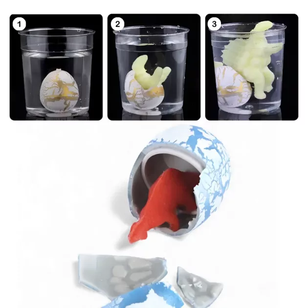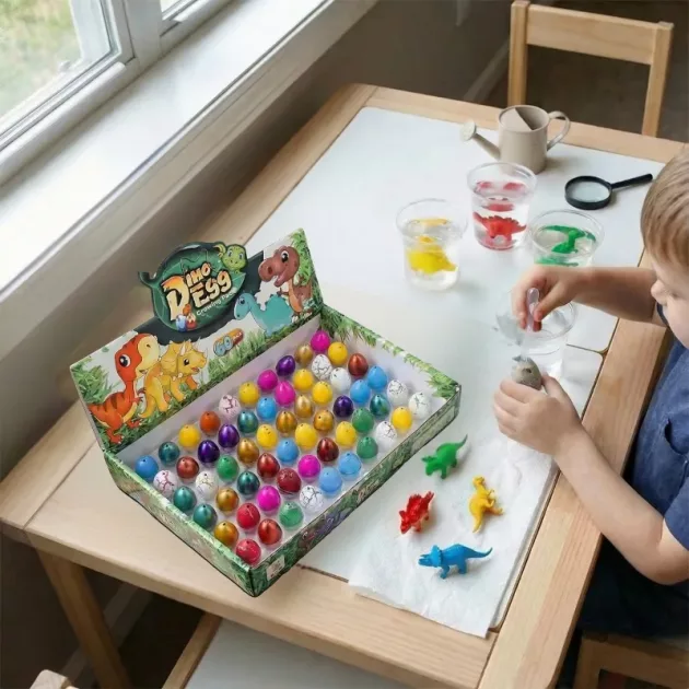 Tato vajíčka jsou skvělá! Přidali jsme vodu a sledovali, jak malí dinosauři vyskočili. S kamarády jsme se střídali v otevírání skořápek a každý jsme se smáli.