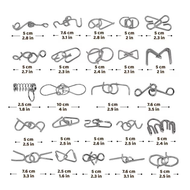 Moje dcera tyto hlavolamy miluje! Opravdu ji nutí přemýšlet a udrží ji soustředěnou na dlouhou dobu. Jsem s těmito drátěnými hlavolamy moc spokojená.
