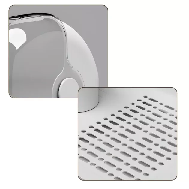 Efektivní odvod vody - Vyjímatelný tác a drenážní systém zabraňují hromadění vody pod výrobkem. Vždy bez vlhkosti, s rychlým schnutím.