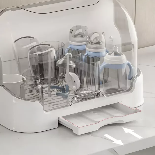 Miluji, jak lahvičky mého miminka zůstávají bez prachu v této sušicí krabici. Usnadňuje mi to život a vše je na jednom místě.