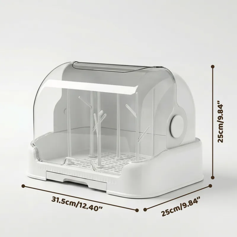 Miluji, jak lahvičky mého miminka zůstávají bez prachu v této sušicí krabici. Usnadňuje mi to život a vše je na jednom místě.