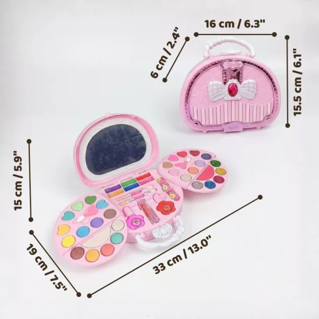 Moje dcera používá tuto malou tašku každé ráno před školou. Předstírá, že se chystá na večírky a miluje měkké štětce. Všechny barvy se velmi snadno smývají!