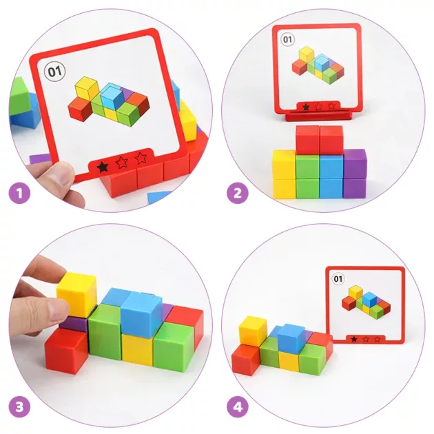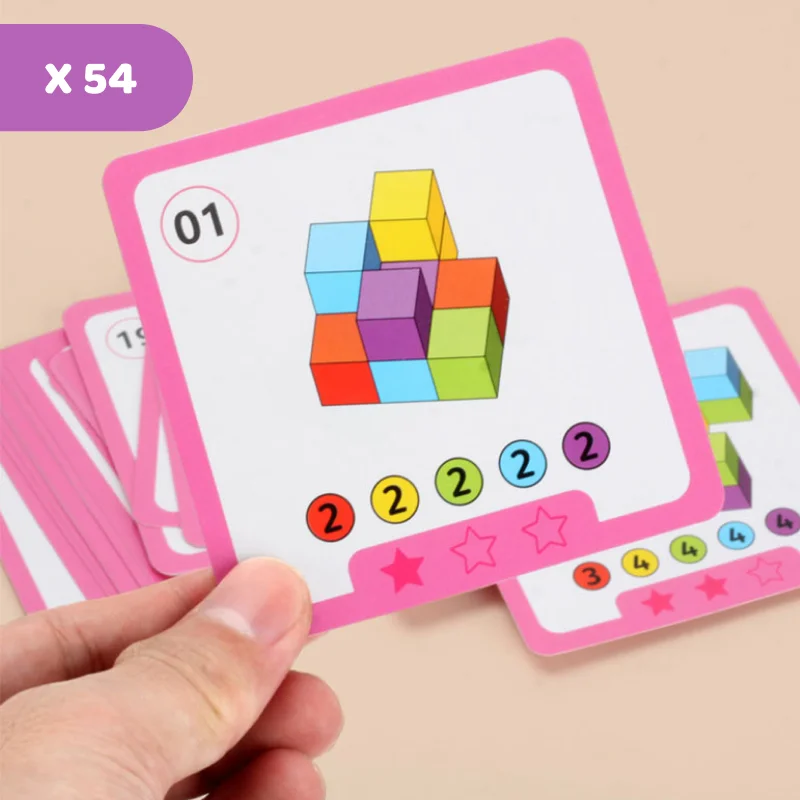 Sledujte, jak vaše dítě každý den roste v sebevědomí a radosti. Tato barevná sada podporuje kreativitu a rozvíjí silné dovednosti v řešení problémů. Jasné kostky a karty udržují učení zábavné a poutavé. Každá výzva přináší radost a pocit úspěchu.