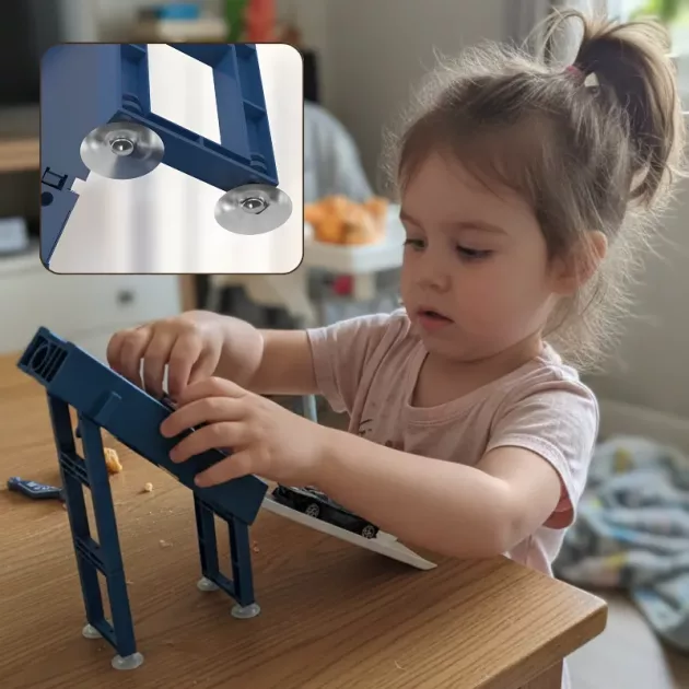 Silná stabilita díky přísavce - Dráhy zůstanou bezpečně na jakémkoli povrchu díky spolehlivé technologii přísavek. Méně starostí pro rodiče znamená více radosti pro všechny.