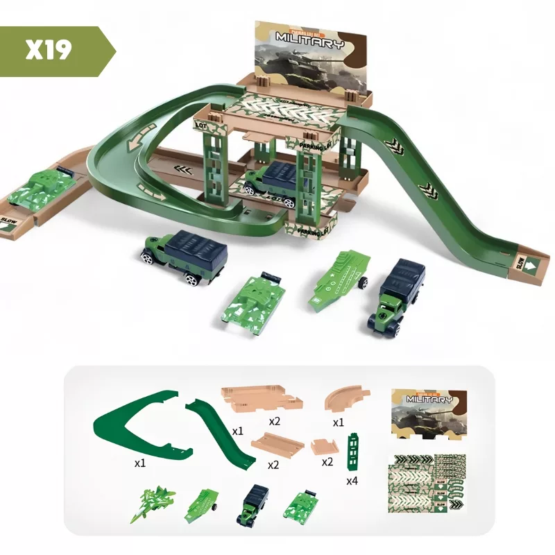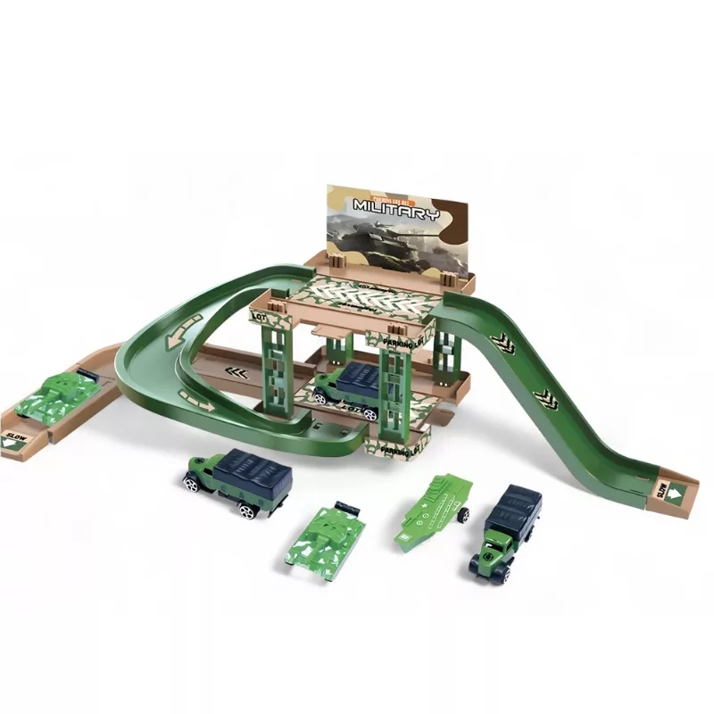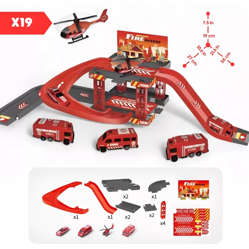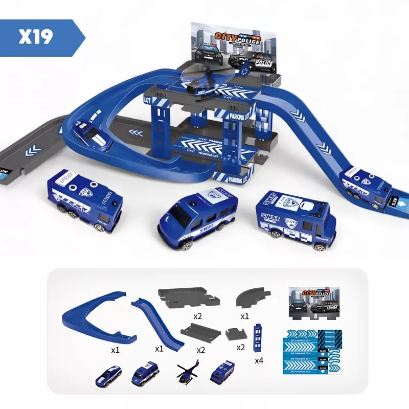 Tato vzrušující sada parkoviště přináší nekonečnou závodní zábavu. Děti mohou spouštět auta z ramp, čímž rozvíjejí koordinaci a načasování. Více úrovní a interaktivní prvky je udrží zabavené na hodiny.