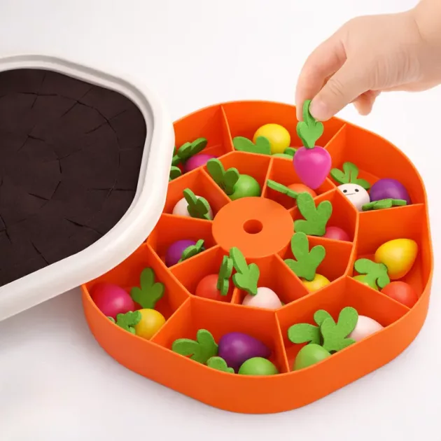 Moje dcera si chce hrát s mrkvovou hrou každý den. Jasné barvy a roztomilé tvary ji udržují nadšenou, zatímco já sleduji, jak přemýšlí nad každým hlavolamem.