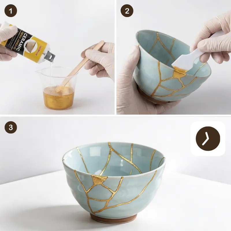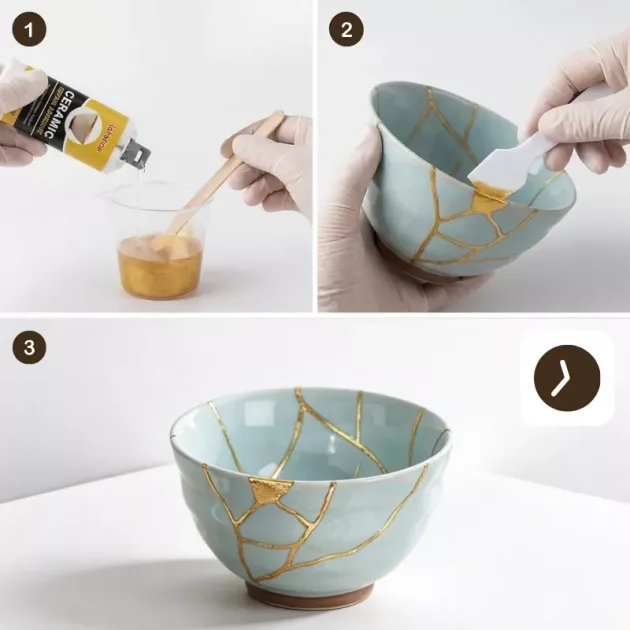 Naše oblíbené hrnky na horkou čokoládu popraskaly po myčce. Děti použily tuto keramickou sadu, postupovaly krok za krokem a teď lesklé opravné linie vypadají jako záměrné umění.