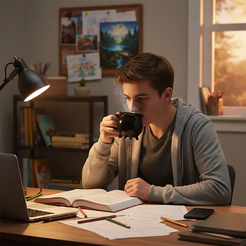 Syn bere svůj čarodějnický hrnek všude s sebou. Prošel už několika nehodami a stále drží!