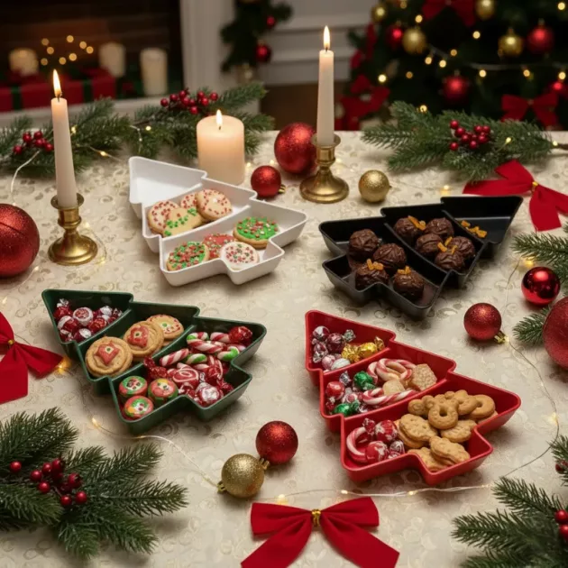 Všechno na stole díky tomuto talíři vypadalo vesele. Pomohl mi uspořádat občerstvení bez stresu během svátečního setkání.
