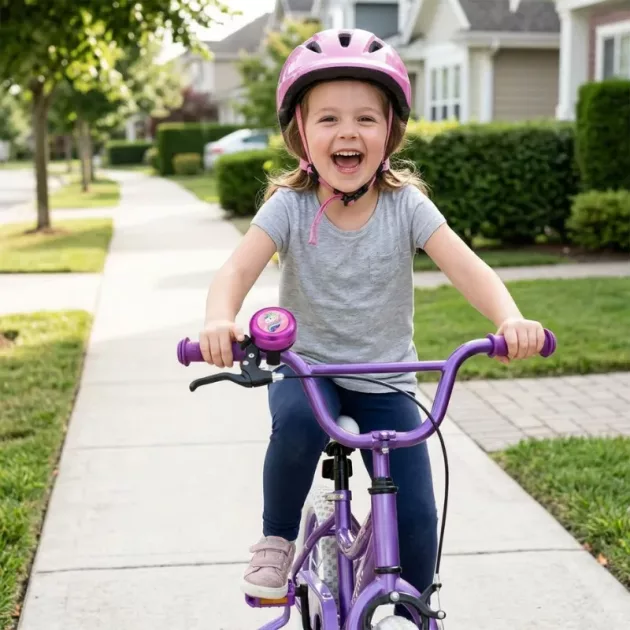 Moje dcera miluje, že má kreslený zvonek sladěný s košíkem. Jasné cinknutí zpříjemňuje procházky v parku, protože běžci ji slyší dlouho předtím, než k nim dojede.