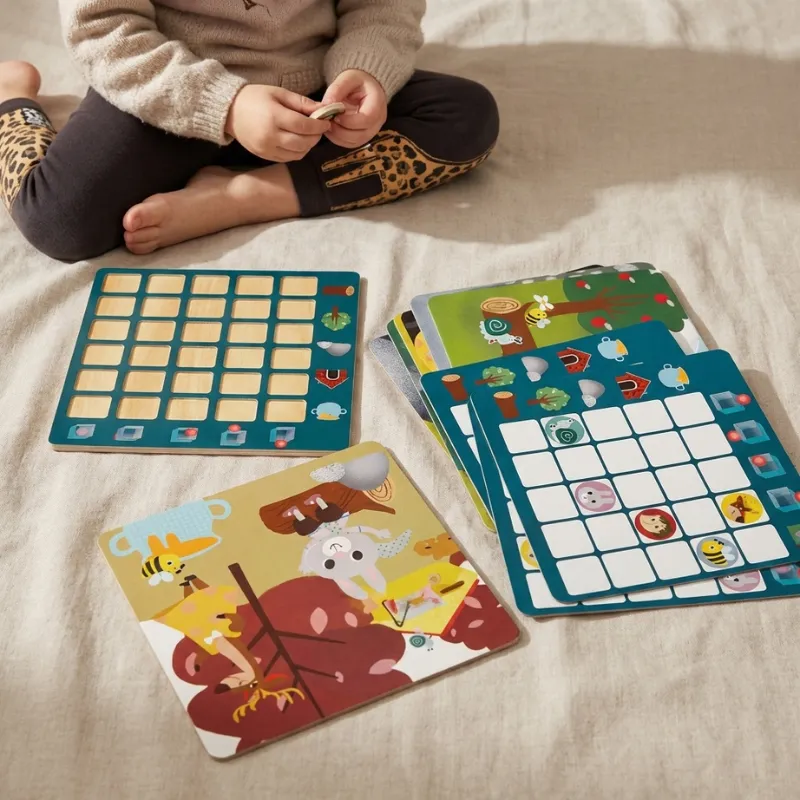 Tahle malá hra dokonale zapadla do našeho večerního rituálu. Uklidíme stůl, rozložíme kartičky a naše dcera trénuje nad, pod a uvnitř, aniž by se nudila.