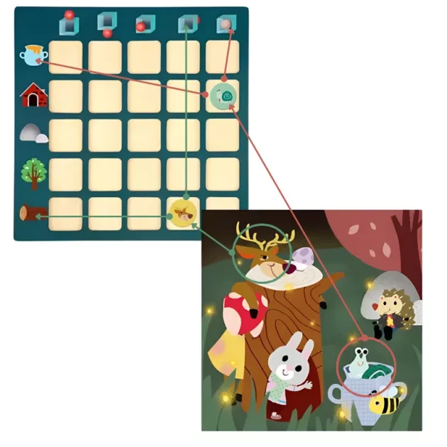 Podporujte každý den zvídavost a udržujte dětskou mysl aktivní i doma. Děti s radostí objevují zvířata tím, že společně sledují zábavné nápovědní kartičky. Sledujte, jak přemýšlejí, přiřazují a smějí se, zatímco roste jejich sebevědomí. Odolné dřevěné dílky zajišťují bezpečnou a dlouhotrvající zábavu pro všechny.