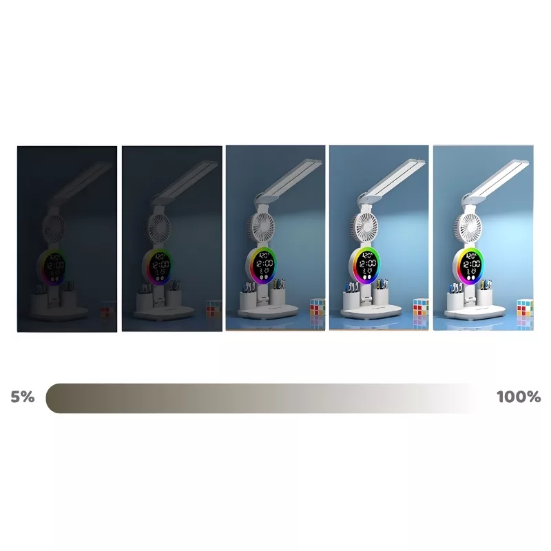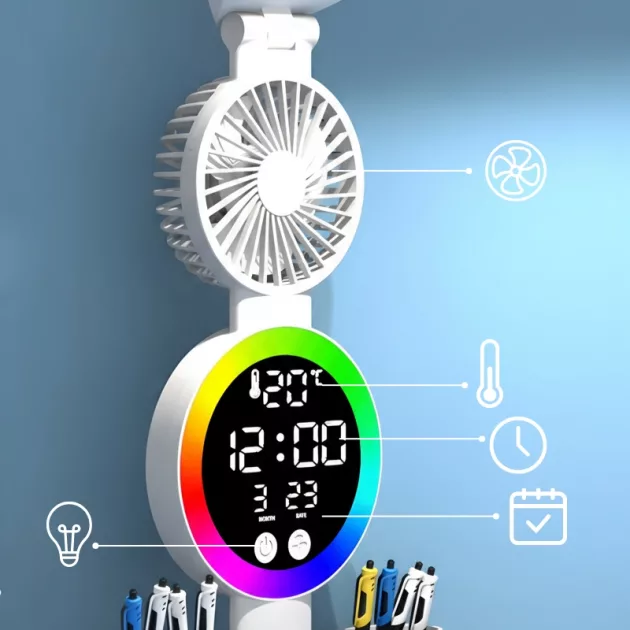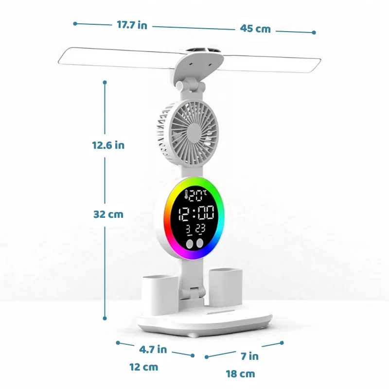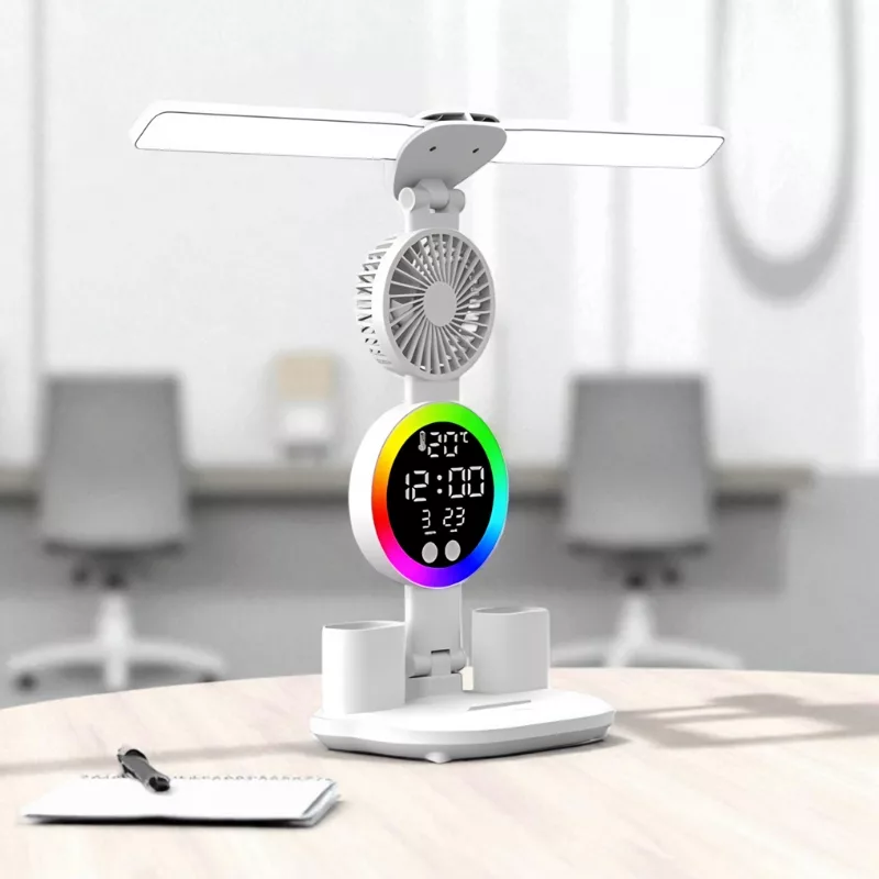 Tato lampa je můj oblíbený výrobek. Větráček je opravdu užitečný a je skvělé mít hodiny přímo u sebe.