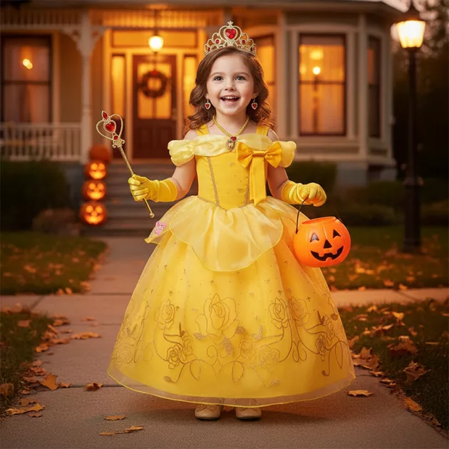 Naše dcera nechce tento kostým vůbec sundat. Vypadá přesně jako Belle a i po běhání je stále pohodlný a zářivý.