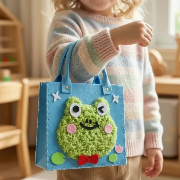 Můj syn miluje svoji ručně vyrobenou kabelku! Filcové díly jsou měkké a snadno se s nimi pracuje. Dokončení a používání mu opravdu zvýšilo sebevědomí.