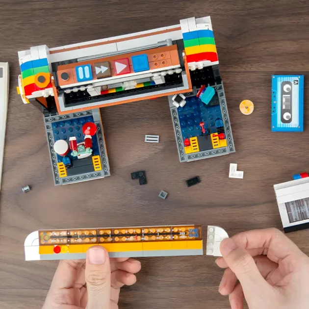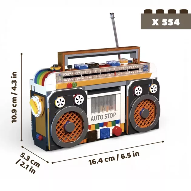 Můj syn se nemohl přestat bavit s tímto retro rádiem. Bavilo ho třídit kostičky a ukazovat hotový výrobek všem na své poličce.