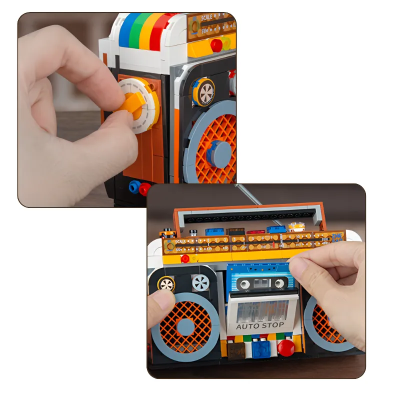 Můj syn se nemohl přestat bavit s tímto retro rádiem. Bavilo ho třídit kostičky a ukazovat hotový výrobek všem na své poličce.