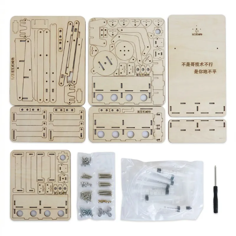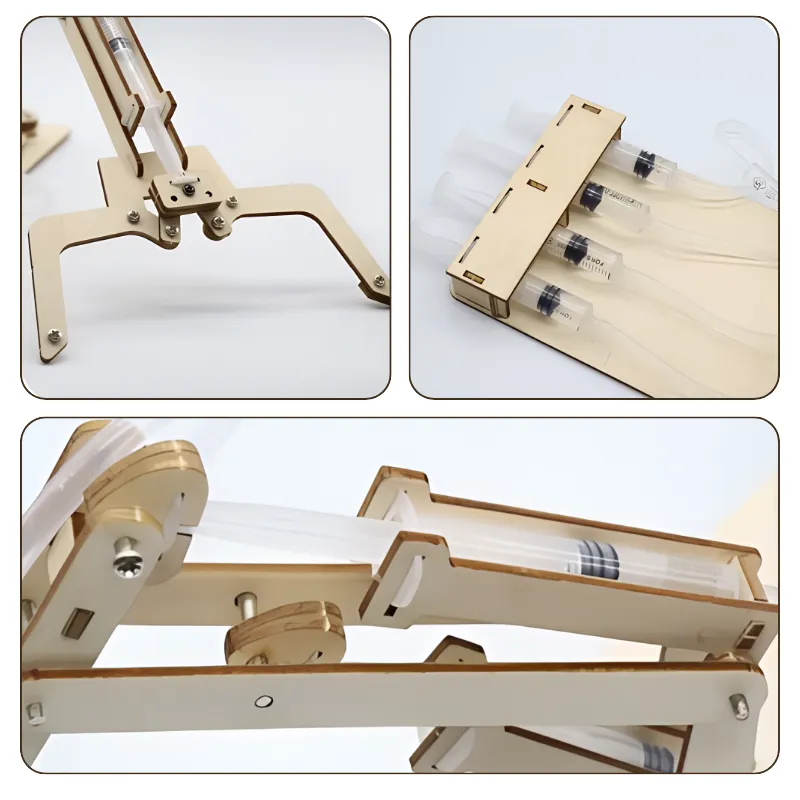 DIY dřevěný model hydraulického mechanického ramene – vědecký experiment a stavebnice pro děti