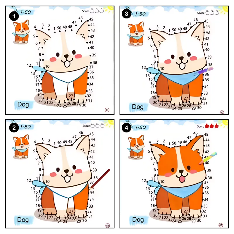 Tečkované stránky jsou opravdu zábavné. Můj malý bratr dělá domácí úkoly rychleji, jen aby si mohl hrát s touto knížkou.