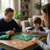 Kvalitní společné chvíle - Rodiče a děti spolu komunikují, sdílejí smích a přátelské soupeření. Společným úsilím a podporou se vytvářejí trvalé vzpomínky.