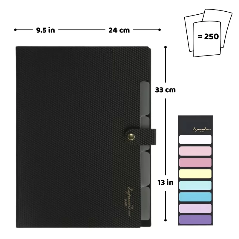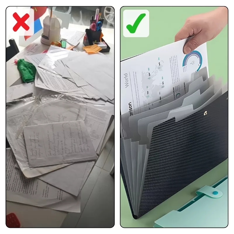 Vyrobeno na dlouhou životnost - Odolný plast vydrží každodenní používání a zabrání roztržení. Zpevněný hřbet a bezpečné zapínání ochrání všechny papíry na cestách.