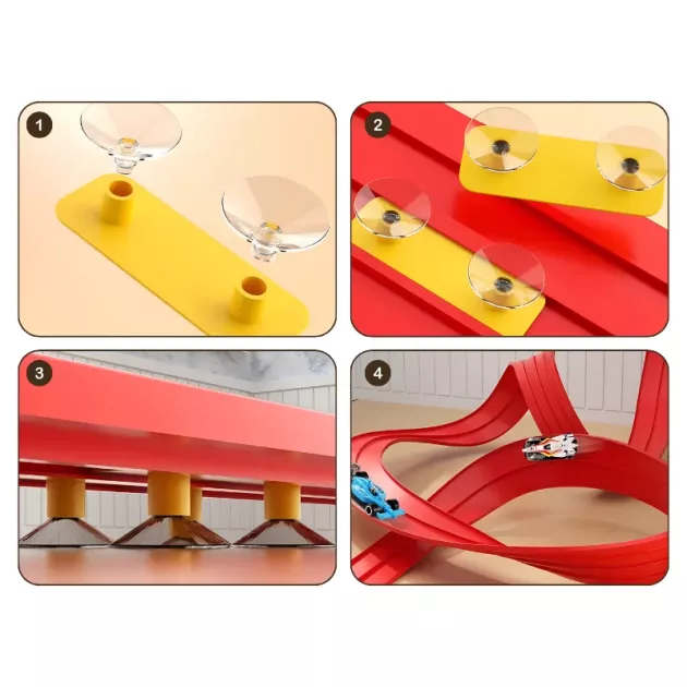 Jednoduché sestavení kdekoli - Přísavky drží pevně na hladkých površích během vteřin. Žádné baterie ani složité nástroje nejsou potřeba k zahájení zábavy.