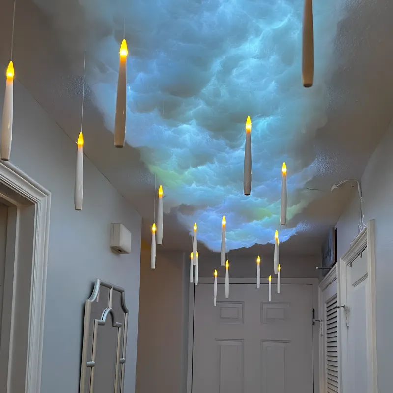 Bylo super snadné je pověsit do pokoje a nemůžu uvěřit, jak je kouzelná hůlka skvělá, když najednou rozsvítí všechny svíčky.
