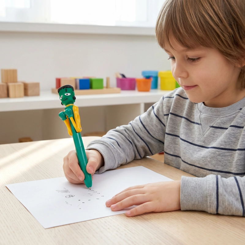 Domácí úkoly dřív končily slzami. Od té doby, co jsem dal synovi tuto legrační propisku, vydrží sedět déle, ťuká na postavičku a skutečně si užívá opisování vět z tabule.