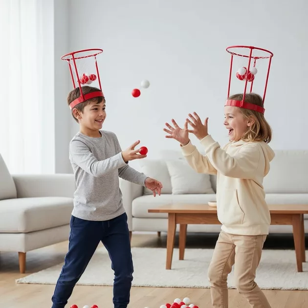 Skvělé na hrací setkání! Závodíme, kdo dá rychleji koš. Dokonce i táta se nemůže přestat smát. Jedna z nejlepších her, co na rodinné večery máme.