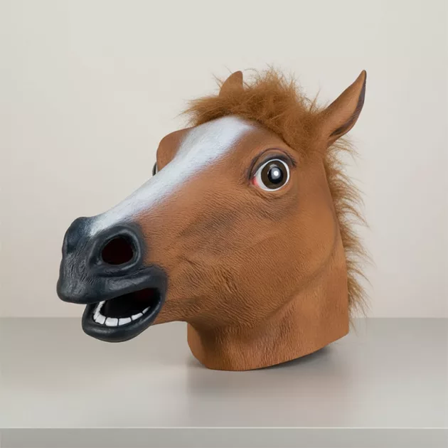 Koňská maska přinesla na moje narozeniny tolik radosti. Rychle šla nasadit a byla pohodlná. Všichni kamarádi ji chtěli vyzkoušet. Teď je to náš oblíbený převlek.