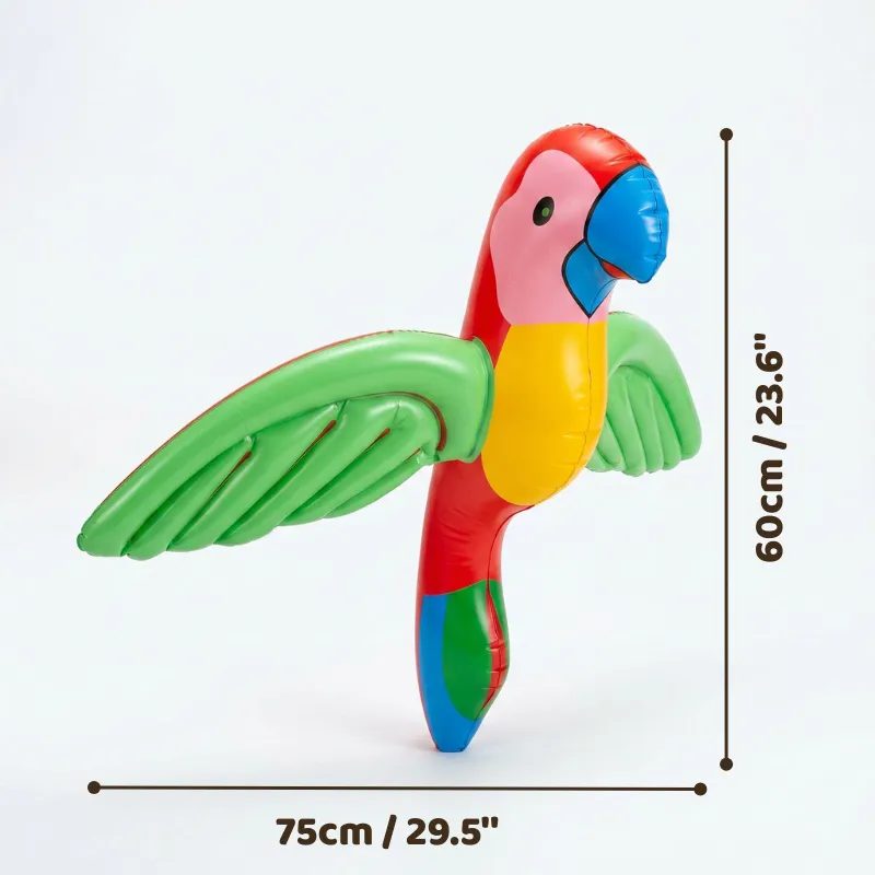 Malý papoušek se složí do batohu k ručníkům a svačinám. Nafouknu ho za minutu a najednou se chce ke hře v písku přidat každé dítě v okolí.