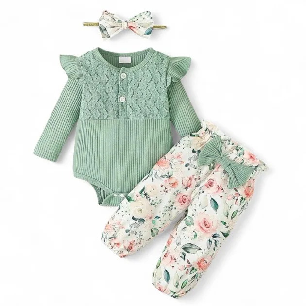 Tento outfit je naprosto okouzlující! Látka je měkká a jemná k pokožce mého miminka a květinové kalhoty přidávají kouzelný dotek.