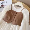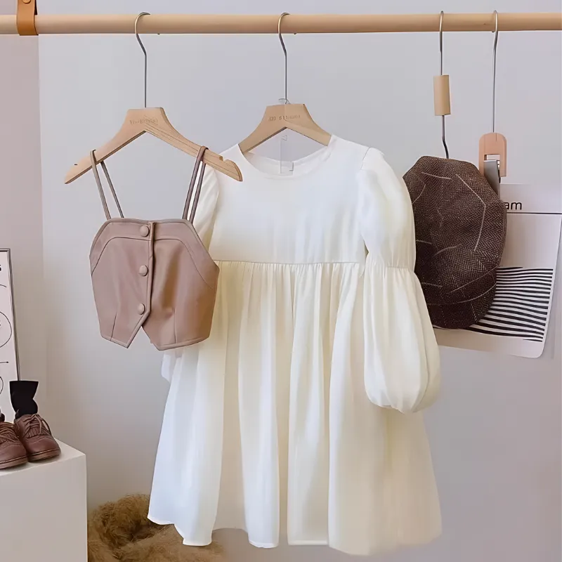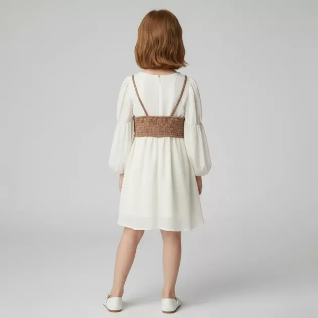 Krásné bavlněné šaty s dlouhým rukávem a vestou pro děti