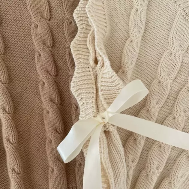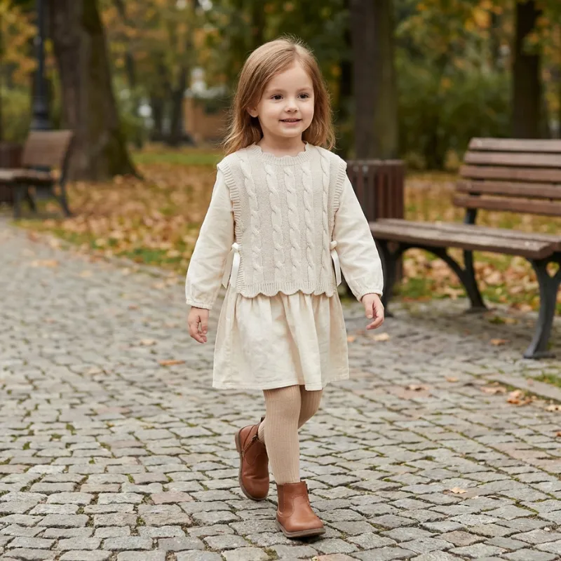 Děti se v této roztomilé vestě cítí šťastně a pohodlně. Měkký pletený materiál je jemný a nedráždí citlivou pokožku. Promyšlený střih zajišťuje, že oblékání je pokaždé snadné a bez starostí. Vaše dítě má volnost k pohybu, hře a objevování.